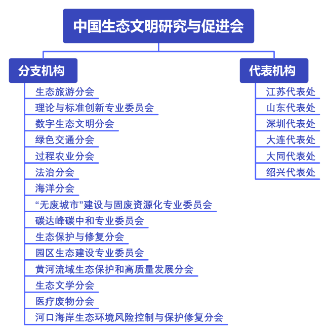 中国生态文明研究与促进会现有15个分支机构和6个代表机构,形成了“专业+地域”的双重组织架构,为生态文明建设提供了有力支撑。