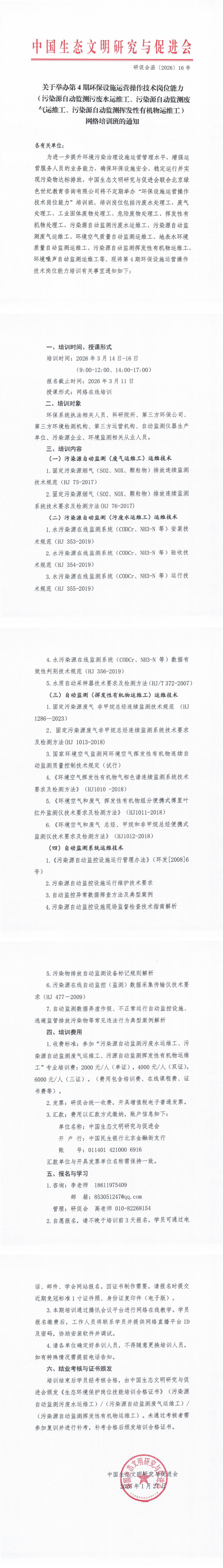 培训通知:关于举办第4期环保设施运营操作技术岗位能力(污染源自动监测污废水运维工、污染源自动监测废气运维工、污染源自动监测挥发性有机物运维工)网络培训班的通知