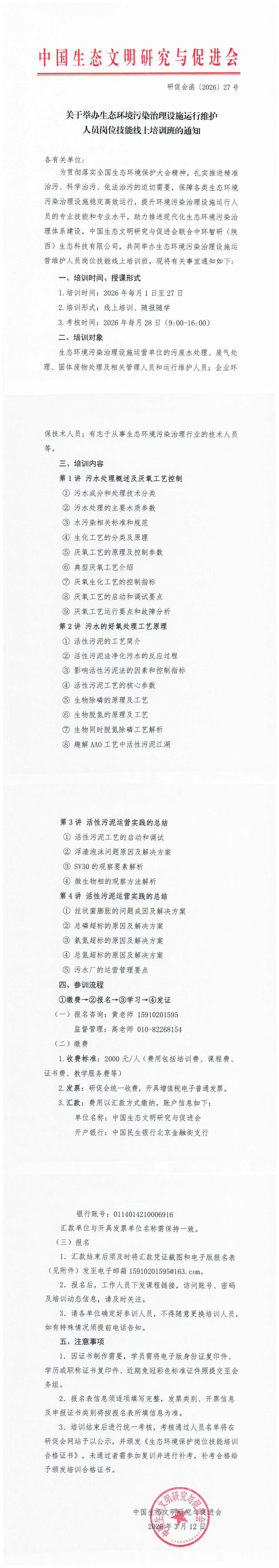 培训通知:关于举办生态环境污染治理设施运行维护人员岗位技能培训班的通知