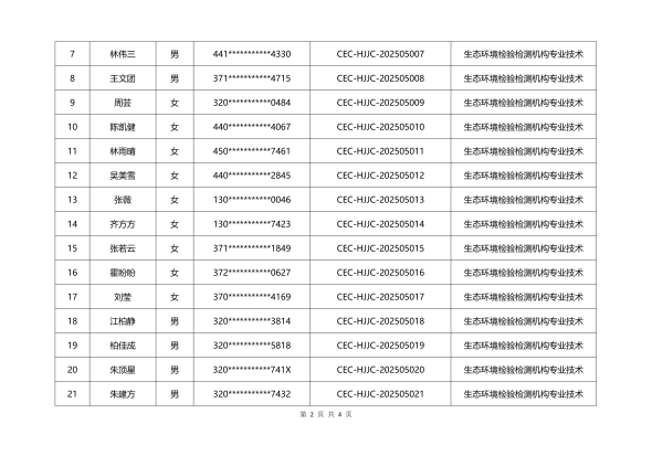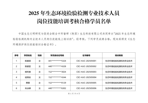 文件下载:2025年生态环境检验检测专业技术人员岗位技能培训考核合格学员名单