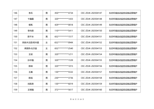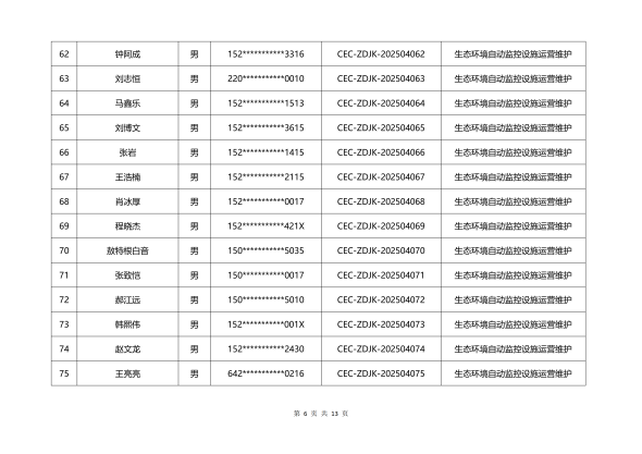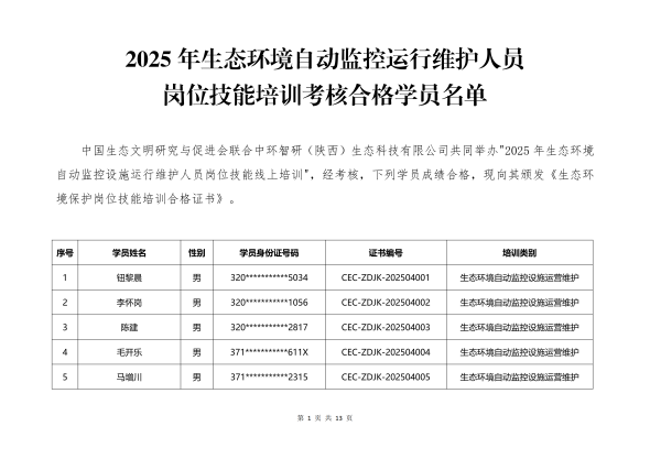 2025年生态环境自动监控运行维护岗位技能培训考核合格学员名单