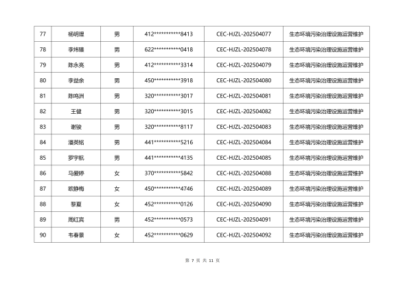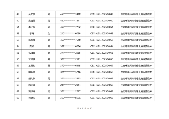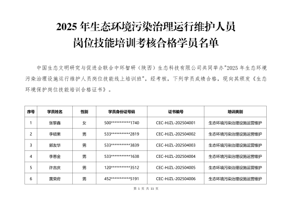 文件下载:2025年生态环境污染治理运行维护岗位技能培训考核合格学员名单