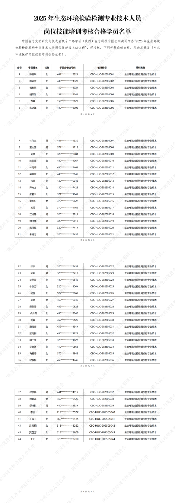 文件下载:2025年生态环境检验检测专业技术人员岗位技能培训考核合格学员名单