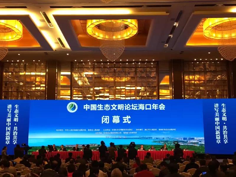 中国生态文明论坛海口年会12月18日闭幕,十一届全国政协副主席、中国农工党中央原副主席、中国生态文明研究与促进会会长陈宗兴出席闭幕式并向2017年中国生态文明论坛承办单位惠州市人民政府授旗。