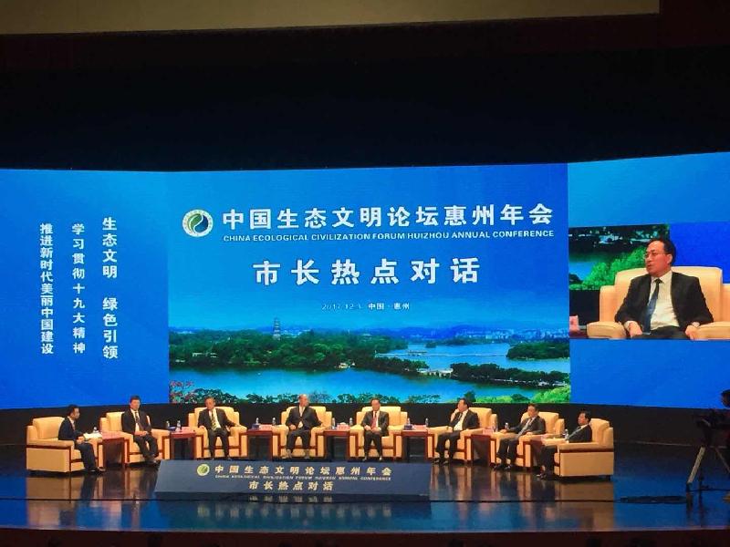 生态文明建设功在当代、利在千秋。要树立和践行绿水青山就是金山银山的理念,坚持节约资源和保护环境的基本国策,像对待生命一样对待生态环境,统筹山水林田湖草系统治理,实行最严格的生态环境保护制度,形成绿色发展方式和生活方式,坚定走生产发展、生活富裕、生态良好的文明发展道路。要牢固树立社会主义生态文明观,推动形成人与自然和谐发展现代化建设新格局。据此,中国生态文明论坛惠州年会的主题为“生态文明,绿色引领——学习贯彻十九大精神,推进新时代美丽中国建设”。