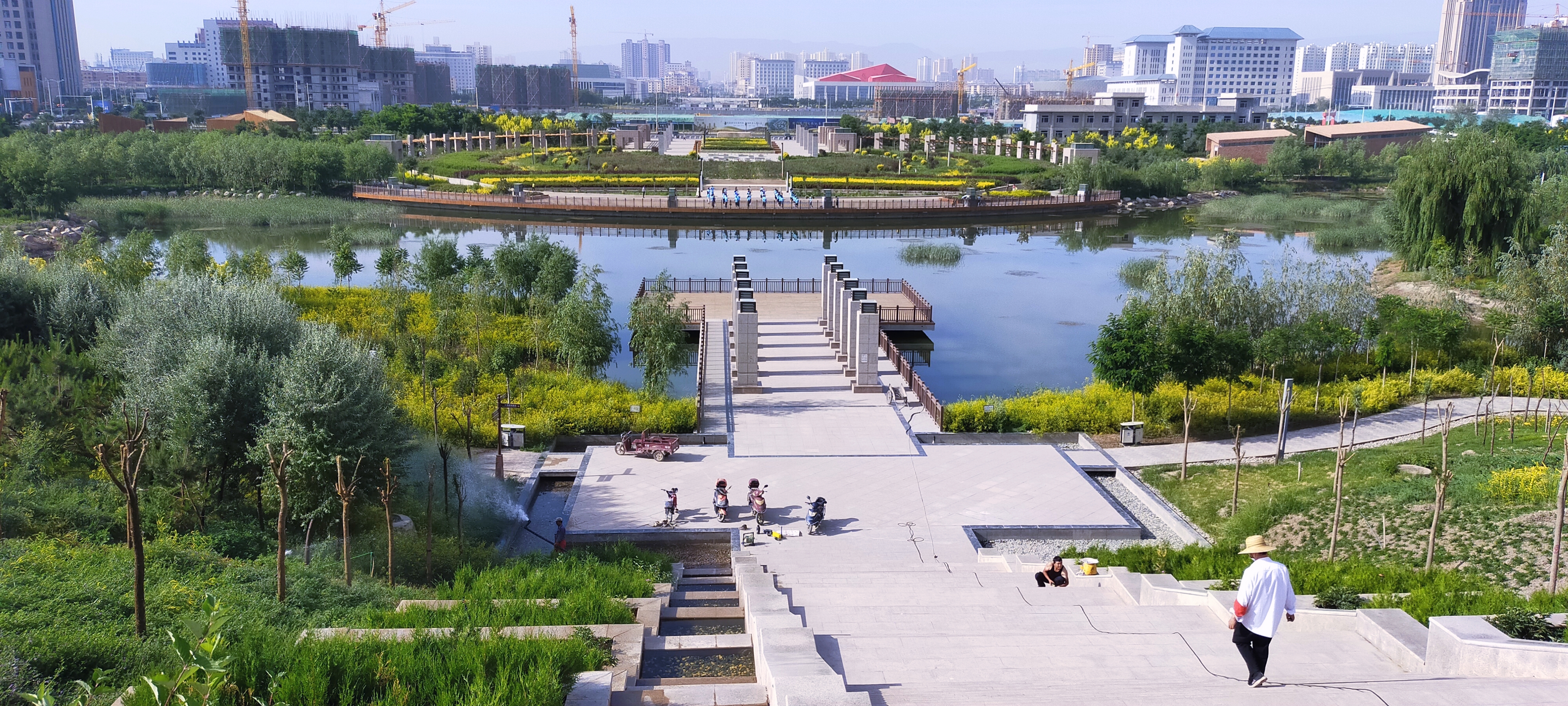 城市亲水宜居-生物多样性保护区:以河流上游金塔河的杨家坝河段、西营河的海藏河段为典型河段,一是通过《武威市杨家坝河城区段防洪与生态综合治理工程》项目实施,加大河道综合治理力度,在不影响河道原有功能、确保城区防洪安全的前提下,从杨家坝河武威城区段上至兰新铁路桥,下到拥军桥,长达近7公里的河槽中,修建布设橡胶低坝10座、跌水堰24座,工程利用河道拦蓄清水,共形成10级连续蓄水景观湖区71万平方米,并对河道两岸、特别是东岸进行园林景观和开发建设,把武威市区河段建成为集水利、旅游休闲、开发等多功能为一体的环境优美、风景秀丽、地方和历史文化特色鲜明的园林化景区。目前,岸边游人如织,旅游休闲、观光健身,络绎不绝;河内芦苇摇曳、水鸟齐鸣,鱼群迥游,已成为城区一道“水清、岸绿、景美”的靓丽风景线。二是通过《武威市海藏湖生态治理工程》(湿地公园)项目实施,在海藏河公园原有景观基础上,以“智慧发展、生态武威、宜居新城”的规划理念,整合南北两湖,借助原有水系格局,建设成集“一个景观轴、两条游行线、九个功能区、两条滨水绿化带”为一体的湿地公园。项目完成投资11.5亿元,实施面积1350亩,完成绿化面积887亩,水域面积266亩,硬制景观面积197亩。建成后的湿地公园,增加了城市水景面积,使人工水系与自然水景相交融,让更多市民亲近自然,享受自然,为进一步优化城市生态空间,美化城市环境,调节区域气候发挥着重要作用,已成为武威市区植物种类最多、观赏性最强的生态绿地公园,成为了市民休闲、观光、娱乐的好去处,不断增强了市民群众的获得感和幸福感。三是通过《杨家坝河及海藏河水系生态综合治理工程》项目实施,在杨家坝河、海藏河及两河交汇口城市规划湿地区域,治理修复生态湿地三处,其中:治理修复杨家坝河河流湿地5.88千米,海藏河河流湿地4.41千米,两河口人工湿地79.2万平方米(1188亩),布置堤防工程20.43千米,布置生态保护林带65.9万平方米(988亩),形成长达10公里的河岸绿化景观带,打造了“城市绿肺”。以上3个生态综合治理工程项目在该区域的实施,使河湖环境深度融合,保障了河流蜿蜒性和生物多样性,提高了亲水宜居环境质量。