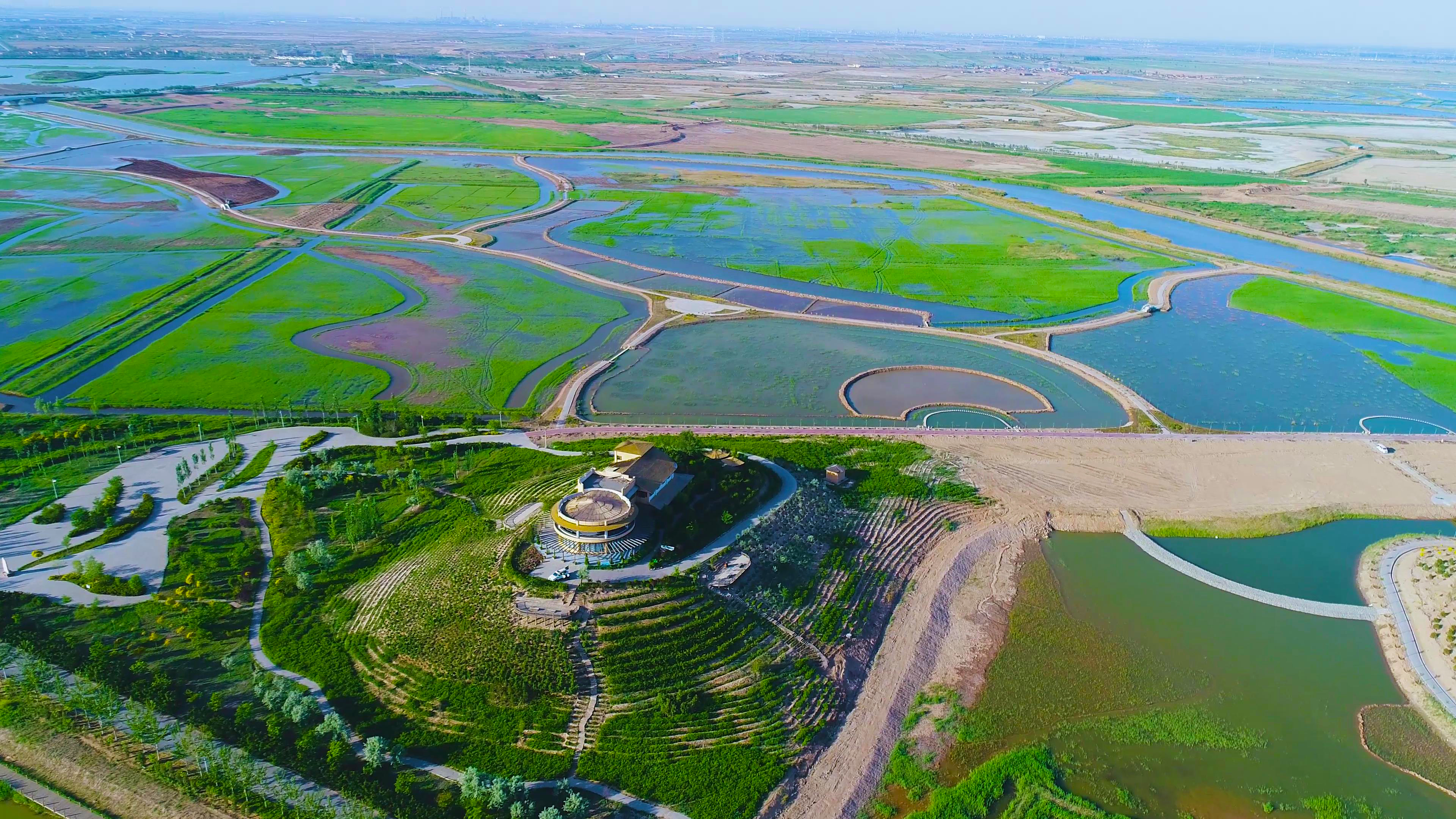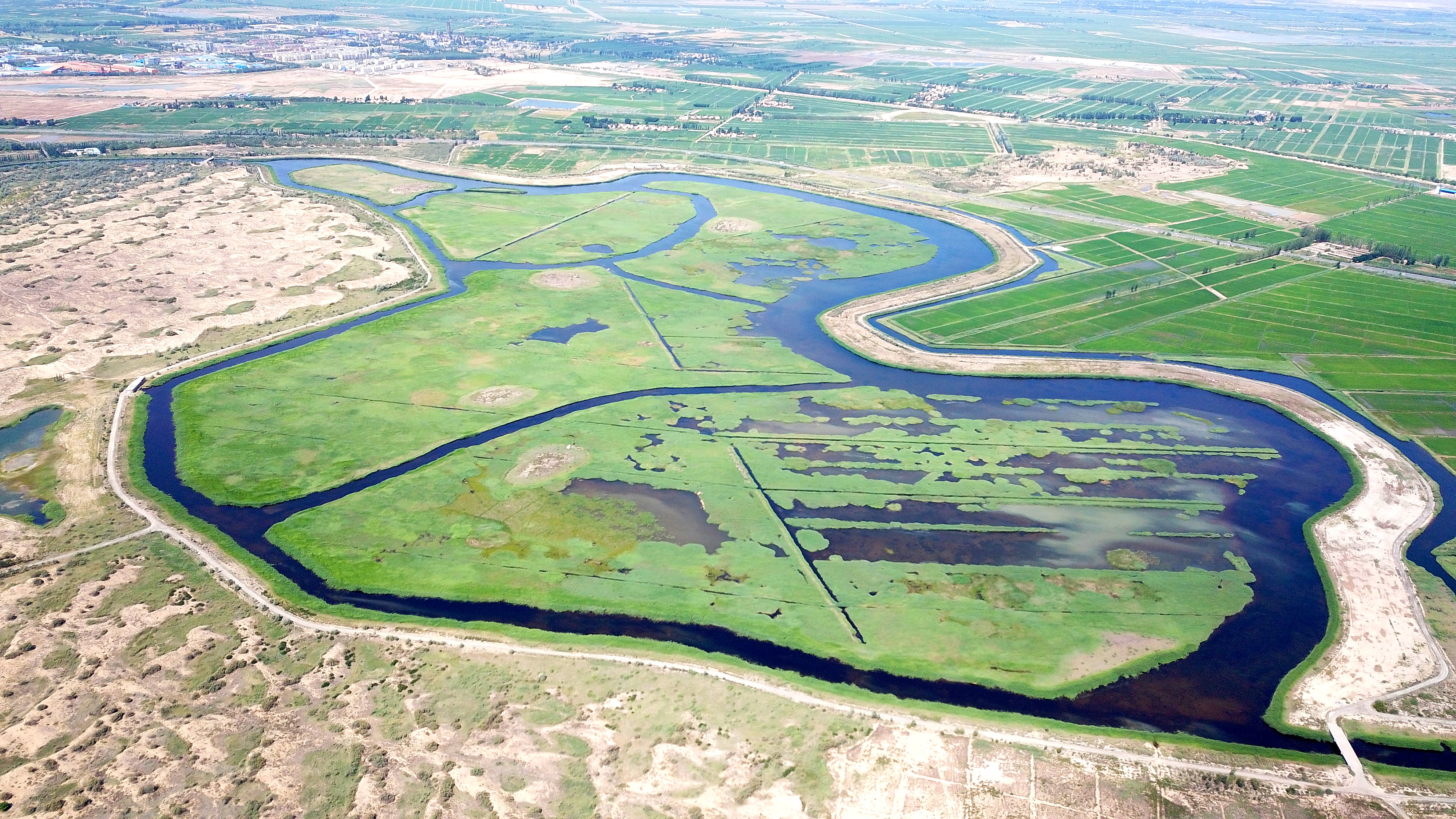 综合治理,清理沙湖潜在污染源。对沙湖景区垃圾填埋场进行关停,将前进农场十一队105户房屋及1.6万平米圈舍整体拆迁,搬迁湖边的骆驼养殖场,拆除清理越野车基地等设施。