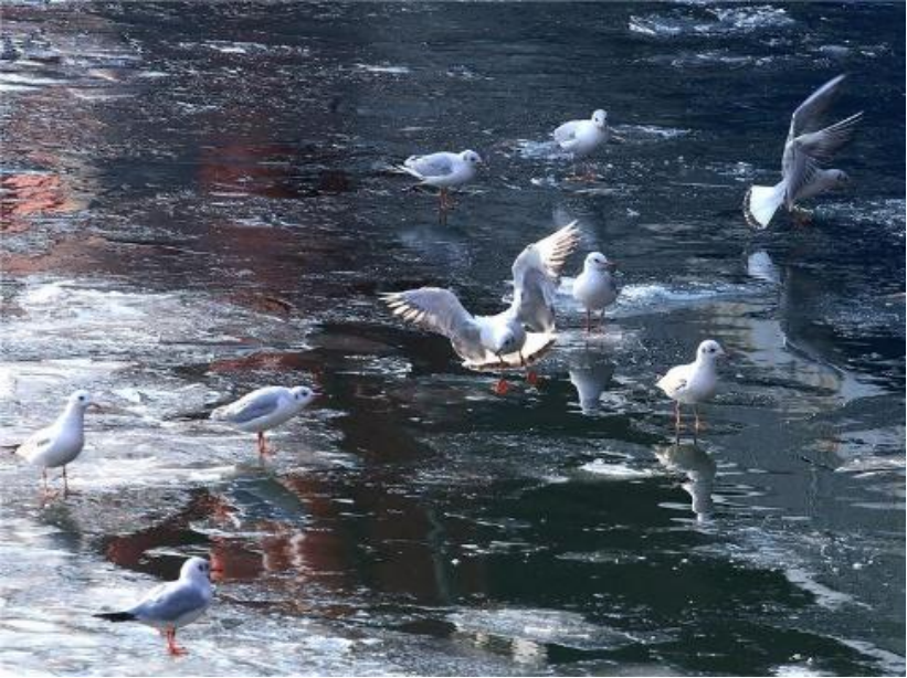 治理后水质清澈,海鸥翱翔 |