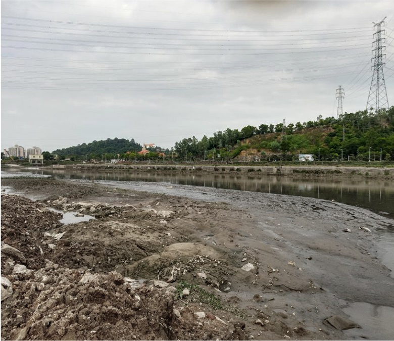 四是河流生态系统破坏严重,生态修复难度大。茅洲河流域河流短小,雨源性特点突出,支流断流现象普遍,水环境容量不足。占河流总长40%的下游界河段为感潮河段,河涌的水动力交换能力弱。河道长期淤积,底泥污染严重,内源污染持续释放,加剧了河道的黑臭程度。历史遗留建筑侵占河道面积约50万平方米,流域内暗渠化河道总长39.97公里,约占河长20%。