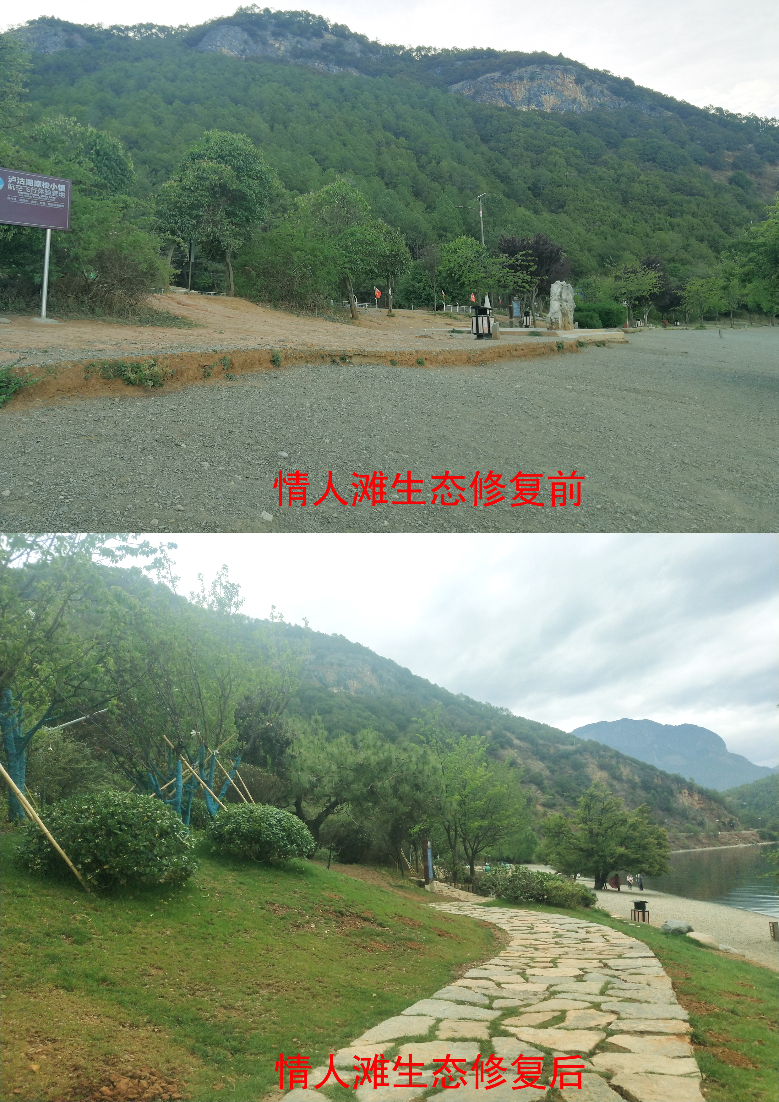 (三)推进由单一治理向系统治理转变。坚决整治“两违”不手软。2015年以来拆除“两违”建筑面积2.89万平方米,减少建筑占地面积23766.58平方米(35.7亩)。坚持80米搬迁不动摇。拆除沿湖80米一级保护区红线内民居客栈180户,减少建筑面积2.7万平方米,建筑占地面积7.47万平方米(112亩)。坚持整治私搭乱建不松劲。拆除临湖亲水平台17处、拆除码头6个。近年来,通过铁腕整治,共减少建筑面积6.86万平方米,建筑占地面积11万平方米(166亩),有效腾退河湖岸线生态空间,全面改善河湖面貌,实现了“人退湖进”。坚决实施智慧监管不放松。建成泸沽湖水质自动监测站和环保所,完成泸沽湖智慧环保信息化工程的主要建设内容。坚持点源、面源污染治理不停顿。实施了沿湖截污治污工程,建成54公里截污管网,20座污水泵站,2座污水处理厂,实现沿湖污水收集处理全覆盖。实施了生态修复和湖滨生态带建设,流转湖滨1122亩土地和水源地1540亩林地、1345亩土地,实施土地休耕和生态修复,对5条主要入湖河道进行系统治理,确保入湖水质达标。