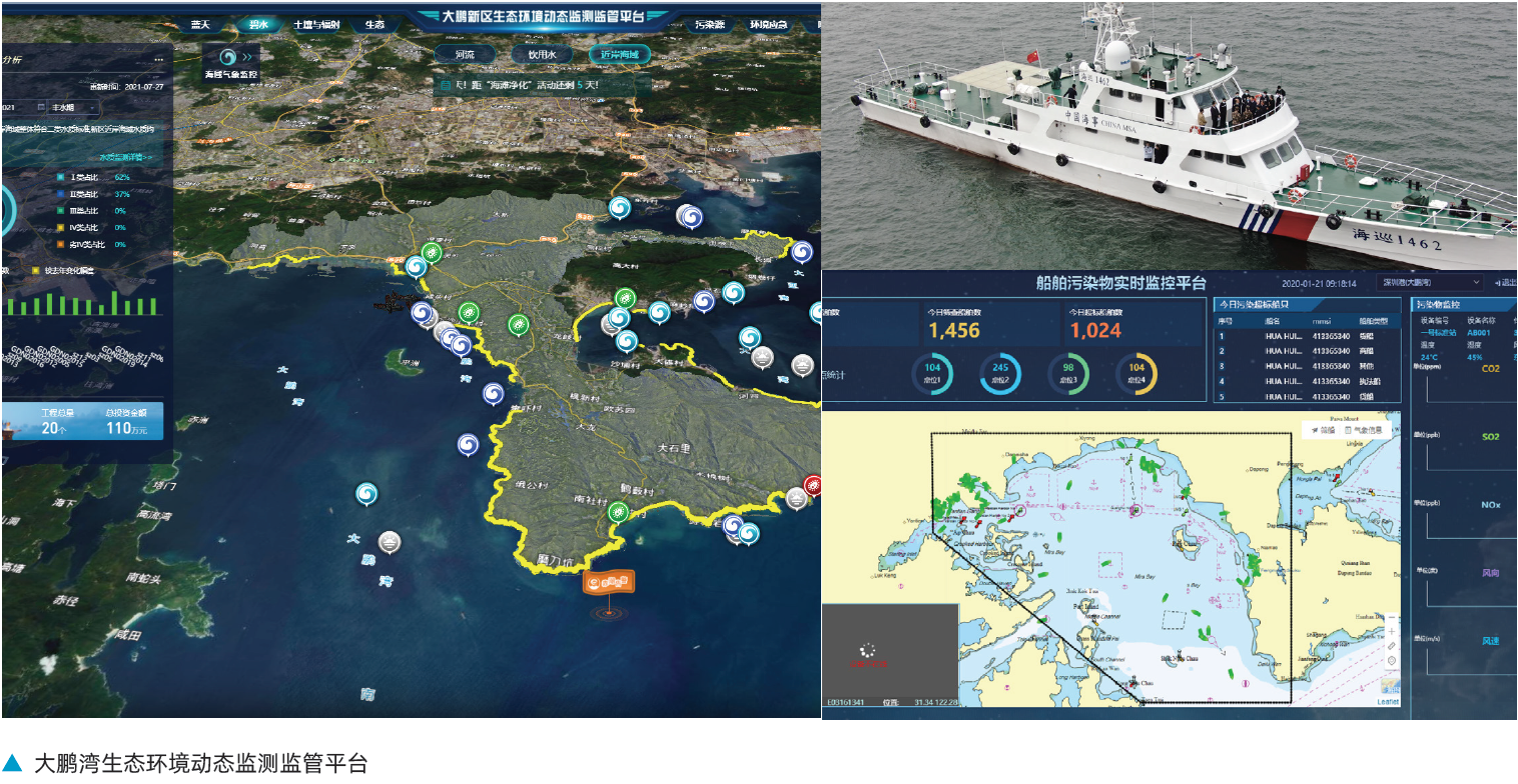 长效机制:一是探索建立“海域-流域-陆域”协调联动的生态环境保护与治理工作机制,涉海五部门共同签署《大鹏新区海陆统筹生态环境治理合作备忘录》。二是制定实施生态保护专项补助政策,向大鹏半岛原村民等累计发放补助资金22.4亿元,设立十多家海湾生态环境保护公益组织,举办各类海洋生态环保公益活动,多渠道推动建立全民参与和社会监督机制。三是加强海湾生态环境动态化监测监管,构建了“横向到边,纵向到底”的可视化、多维度生态环境智慧监管网络。
