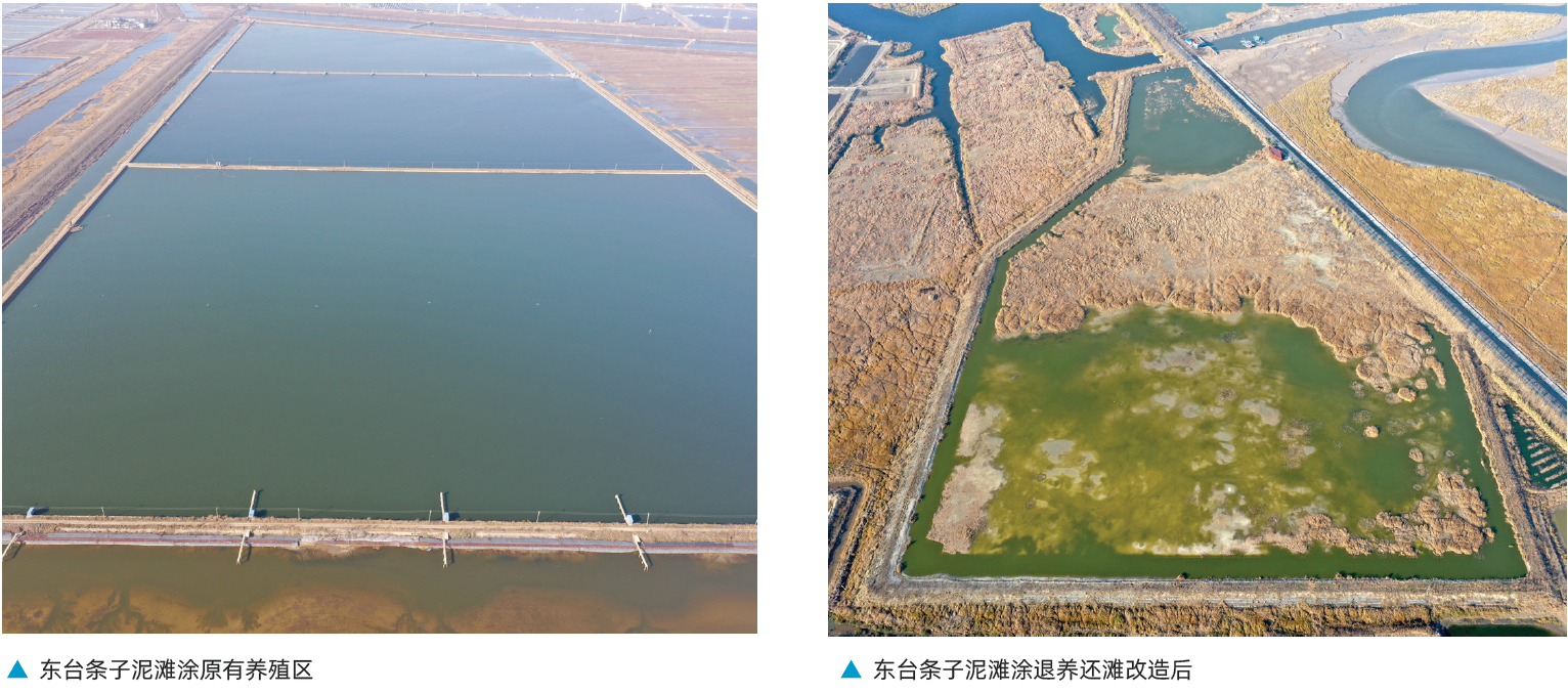 治理成效:一是加强入海河流综合治理,开展东台河疏浚34.05km,新建坡式护岸14.86km,提高流域供水能力,改善流域水环境,2021年周边海域国控点位水质年均值为三类。二是严格保护鸟类栖息地,设立条子泥湿地公园,制定《盐城市黄海湿地保护条例》,实施720亩高潮位栖息地修复工程,开展微地形改造、湿地修复,保护修复滨海水鸟栖息地,观测到的鸟类数量较上一年增加3万只,种群新增22种,“以恢复鸟类栖息地为目标的基于自然解决方案—盐城黄海湿地遗产地生态修复案例”案例在2021年“生物多样性100+案例”全球征集活动中被评为特别推荐案例。三是便利公众亲海观鸟,建立日常整治机制,为观鸟爱好者提供指定的观鸟点位,并引领和指导公众观鸟活动有序开展,2019、2020年分别有66.3、99.7万人次游客。