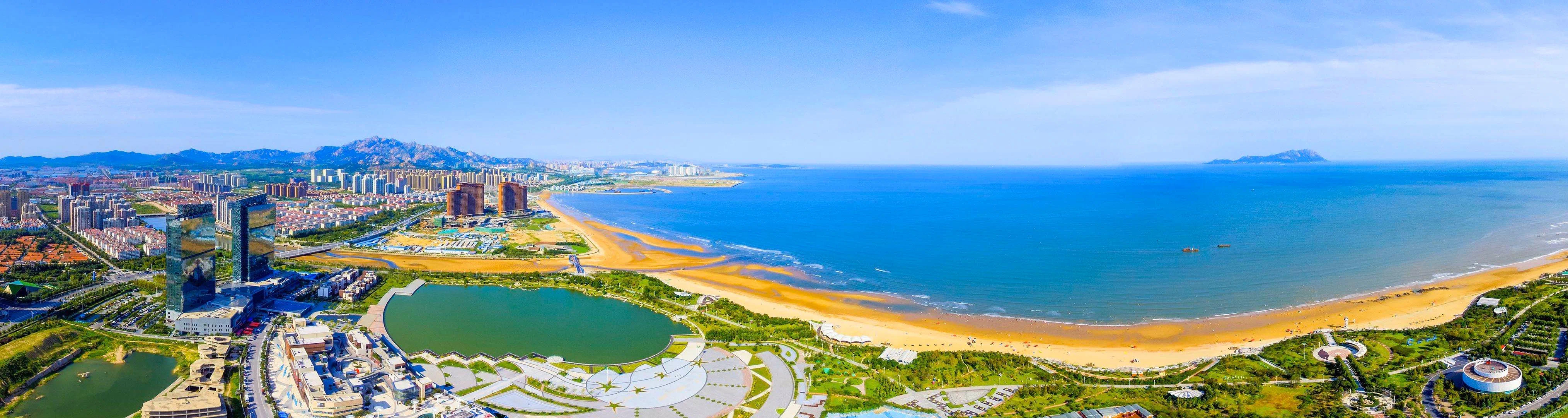 自然禀赋:灵山湾位于青岛西海岸新区,岸线长30公里,海域面积60平方公里,天然优质沙滩9.6公里,环抱北方第一高岛-灵山岛(海拔513.6米),形成“金滩镶绿野,碧海映蓝天”的海滨风光。